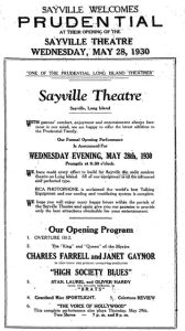 - Stankovich, Jordan. “The history of theatres in Sayville.” The Long Island Advance, 5 April 2023.